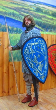 Тут же находятся реплики кольчуг, пластинчатого панциря, шеломов, поддоспешников и подшлемников, которые могут примерить все желающие.