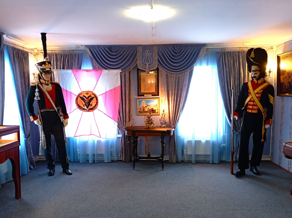 В каждом из таких макетов около 250 миниатюрных фигурок бойцов, воссоздан натурный план со строениями, деревьями и кустарниками, дорогами и водоемами. К периоду наполеоновских войн относятся ружье и карабин – точные размерные и весовые копии, изготовленные из материалов той поры в Испании, а также пистолеты тульской и испанской работы. Уникален подлинный походный офицерский столик начала XIX века. К числу наиболее впечатляющих экспонатов относится мундир поручика лейб-гвардии Литовского полка (именно такой носил владелец павловской усадьбы В.С. Юкичев в 1812 году), изготовленный известным реконструктором Сергеем Прокоповичем и в точности повторяющий оригинал.