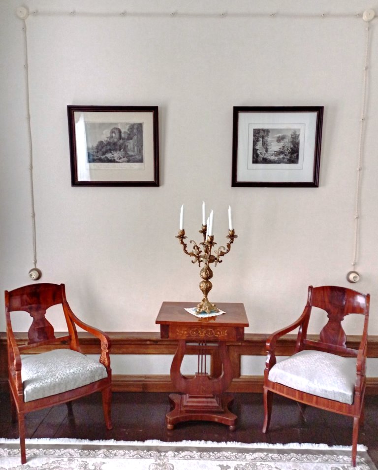 Кроме выставляемых в экспозиции, серебряного и фарфоровых сервизов западно-европейского производства XIX века, гостей могут заинтересовать также и старинные гравюры, расположенные на стенах столовой. Представлены мастера гравировального искусства: Бенуа Одран, Готфрид Эйхель Матиас, Вилль Иоганн Георг.