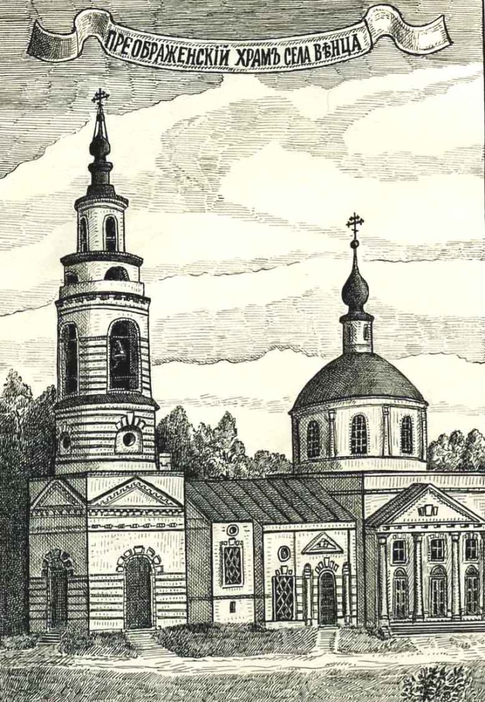 После грозных событий 1812 г. во многих селах и городах Российской империи строились новые храмы в честь избавления от нашествия и великой победы. То же случилось и в погосте Венец. С 1812 года на Венце священствовал местный уроженец Симеон Кириллович Венецкий. Он замыслил устроить вместо старого деревянного новый каменный храм. За помощью батюшка обратился к прихожанам — крестьянам деревень Карики, Красная Грива и Федюнино. Мужики вняли просьбе пастыря-земляка. Так как офенский промысел тогда переживал расцвет, то и денежки у венецких прихожан водились немалые. Особое старание о благолепии будущего храма проявили приходские крестьяне: деревни Карики церковный староста Василий Григорьев, Федор Савельев, Козьма Федоров, Максим Сидоров; деревни Красной Гривы строитель Анисим Кондратов, Захар Лукьянов, Никифор Маркелов; деревни Федюнино Василий Васильев, Ефим Васильев. Все вместе они пожертвовали значительную по тем временам сумму 9600 рублей. На храм пожертвовали также местные помещики Симоновы, Хотяинцевы и Шестаковы. Строительство каменного храма в честь Преображения Господня с приделом в честь Архангела Михаила началось летом 1820 г. по благословению архиепископа Владимирского и Суздальского Ксенофонта. В 1825 г. был освящен придельный, а еще через пять лет – основной храм.