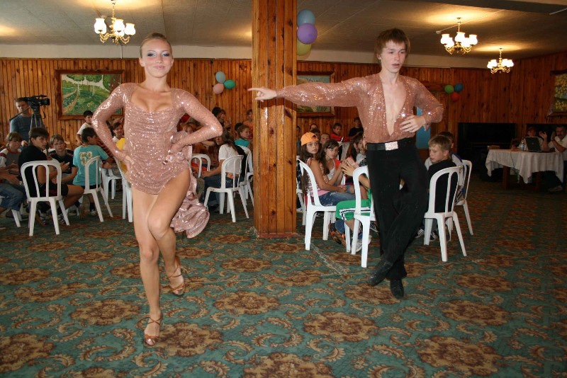 Вмиг защелкали затворы фотоаппаратов, оркестр грянул туш, зрители аплодировали. Но вот оркестр сменился баяном. Девочки в белом запрокидывали головы в венках, поднимали руки, и сгибая стан, наклонялись в стороны и приседали. В заключение они выстроили пирамидой. В поле зрения неожиданно появилось полтора десятка ребят, державших довольно странные предметы в виде металлических треугольников, деревянных линеек, складывающихся вдвое, трубок. Появление этой группы вызвало оживление в рядах лагерников, присоединившихся теперь к зрителям. Это был по меньшей мере странный оркестр. В общем, он воспроизводил довольно занимательные звуки. Но лагерники гордятся своим оркестром и называют его не иначе как джазом.