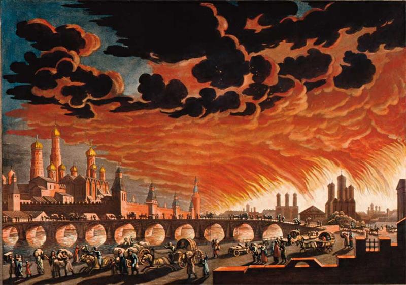 Сам же Евстафий Бернс, пытаясь спасти хотя бы часть своего достояния, задержался в первопрестольной сверх меры. Когда же и он пустился в бегство, было уже поздно — французский авангард вступил на московские улицы. Тем не менее, по уже начавшему гореть городу Бернс пробрался на восточную окраину и отправился пешком по «владимирке». Путешествие было тяжелым и крайне опасным. В деревнях волновались крестьяне, поблизости показывались разъезды французов.