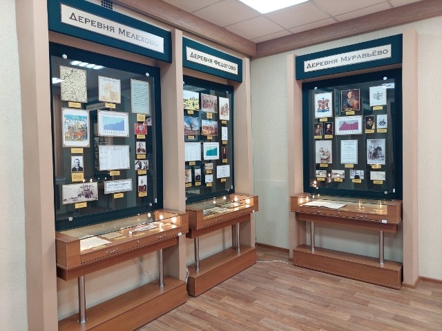 Музейная экспозиция знакомит с историей возникновения посёлка Мелехово – самого крупного населённого пункта Ковровского района. В экспозиции представлены документы и материалы о деревне Мелехово, деревне Федотово и Муравьёво, из которых в будущем образовался посёлок Мелехово и владельцами которых были славные князья Пожарские. Экспозиция также знакомит с зарождением каменоломного промысла в Ковровском уезде, на основе которого образовались современные крупные строительные организации в посёлке Мелехово, такие как ОАО «Ковровское Карьероуправление», ГУП «Владимирское карьероуправление» и ОАО «Завод производства извести», ставшие для посёлка градообразующими.