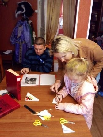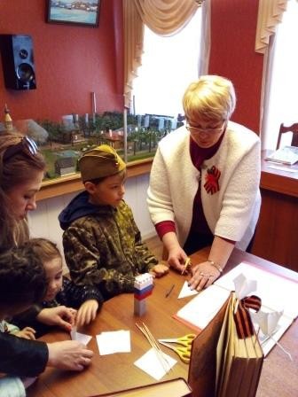 Подобный мастер-класс был проведен для гостей из Владимира, взрослых и детей, которые с большим интересом и желанием в нем поучаствовали. Посетители музея также смогли пролистать альбом «Село Маринино. Бессмертный полк» и рассмотреть фото фронтовиков. Под впечатлением увиденного и услышанного один из маленьких посетителей музея, 6-летний Артем, на всю усадьбу стал распевать песни «День Победы» и «Россия, Россия» и с гордостью рассказал сотрудникам музея-усадьбы о своем родственнике, погибшим в 18 на войне.