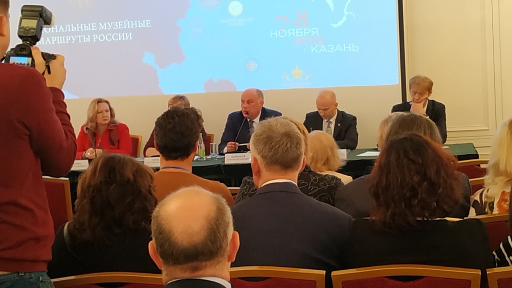 Программа презентационных мероприятий «Национальные музейные маршруты России» в Казани проходила в два этапа. В первый день состоялась пленарная сессия «Музеи на брендовые маршрутах России». Открыл сессию заместитель Руководителя Федерального агентства по туризму, советник Президента Союза музеев России С.Е. Корнеев. Он отметил, что музеям необходимо в своей работе помнить об основной функции музея – сохранять и преумножать культурное наследие страны, не переходя грань, при желании, зарабатывать деньги и не превращаться в развлекательные центры.