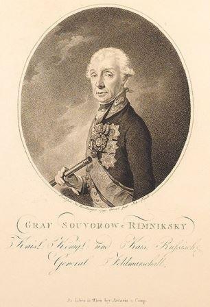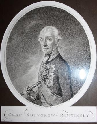 В период 1799 – 1800гг. с ростом популярности полководца, европейские граверы и художники едва успевали насытить колоссальный спрос заказчиков на портрет Суворова. С живописного портрета Крейцингера мастера выполняли гравюры. Гравюра нашего музея выполнена Нейдль Иоганном. Австрийский гравер - Нейдль Иоганн долгое время находился под покровительством графа Визера, благодаря которому мастер имел почет среди светского общества. Нейдель с высоким уровнем мастерства гравировал знаменитые личности с портретов известных живописцев. По мнению современников, его гравюра «Graf Souvorow – Riemniksky» очень точно передает русский характер волевого, самоотверженного, открытого и стремительного полководца.