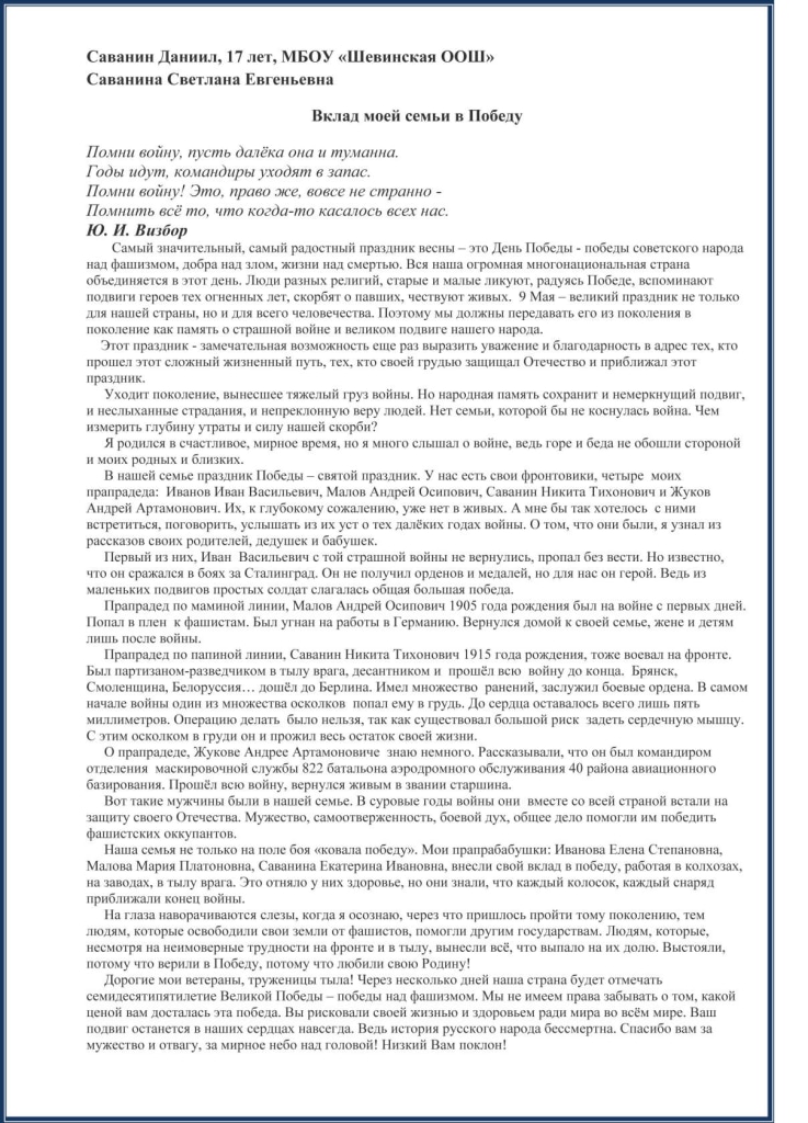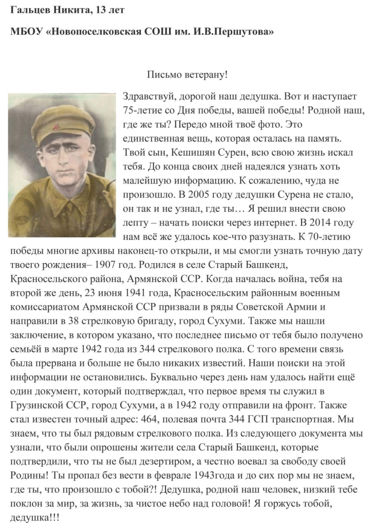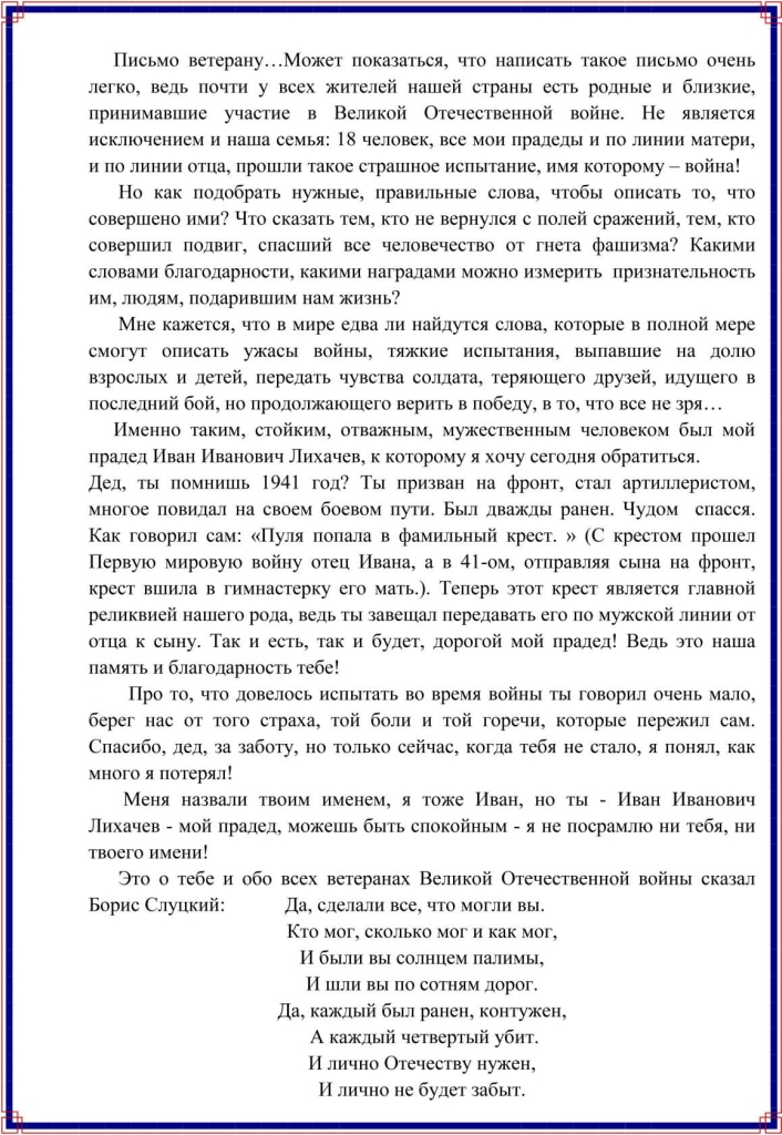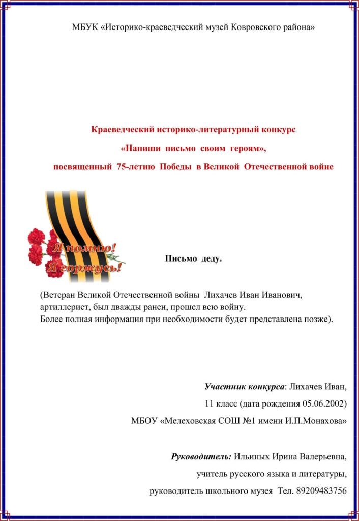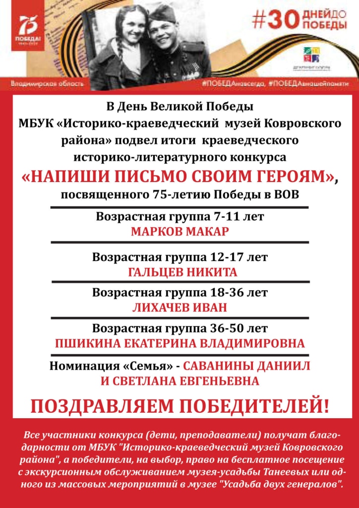 Представляем Вашему вниманию работы победителей конкурса "Напиши письмо своим героям", посвященного 75-летию Победы в Великой Отечественной войне