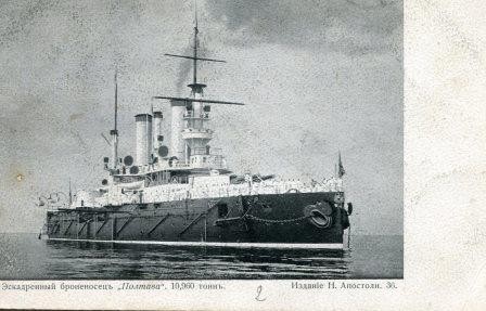 Так, в ночь на 14 марта паровой катер с «Полтавы» метательной миной потопил один из японских брандеров, намеревавшихся «закупорить» вход в гавань Порт-Артура. А 31 марта моряки «Полтавы» с ужасом наблюдали гибель на японских минах «Петропавловска», унесшего с собой на дно морское 670 человек экипажа и командующего русской эскадрой адмирала Степана Осиповича Макарова с его штабом… В дальнейшем «Полтава» «пожертвовала» четыре своих 152-мм орудия на укрепление сухопутной обороны Порт-Артура. Броненосец привлекался и для огневой поддержки русских войск, оборонявших город-порт, обстреливал батареи и корабли противника.