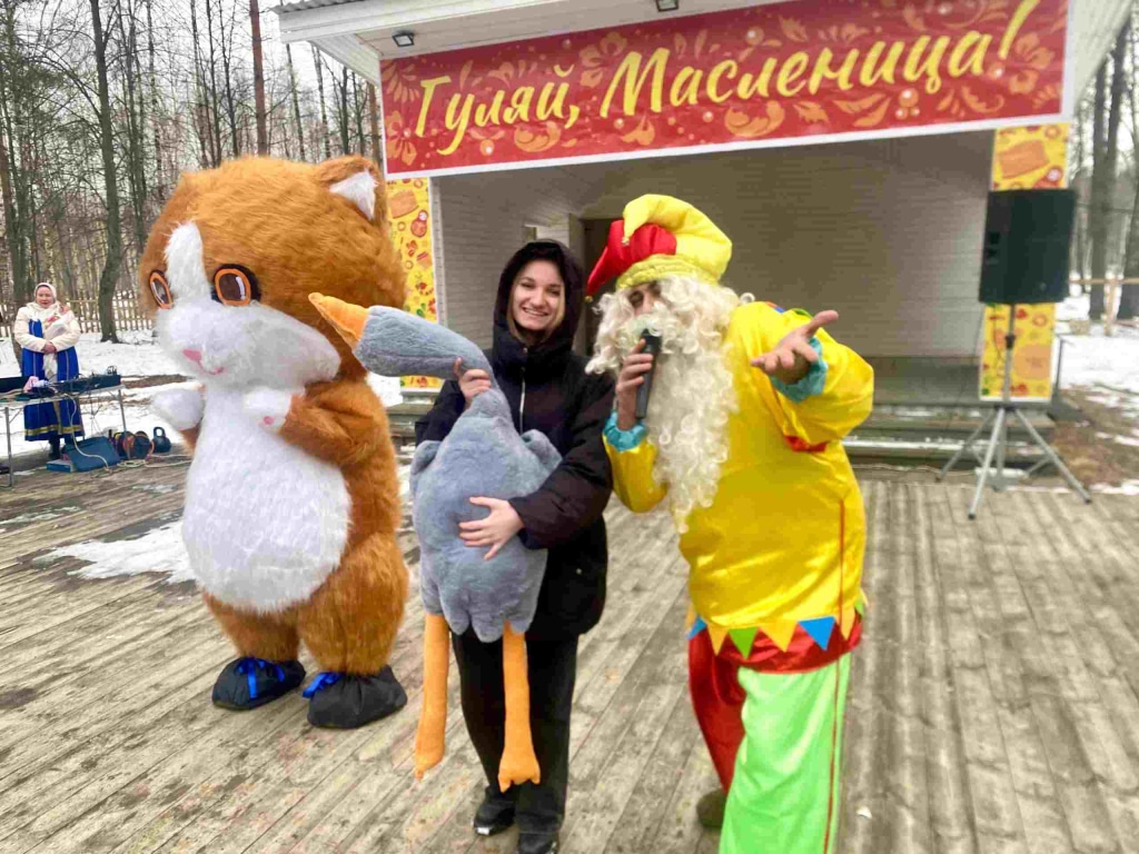 Помимо веселых игр на свежем воздухе для детей и их родителей (солнцебол, гигантские лапти, водонос и др.), и увлекательного мастер-класса по стрельбе из лука в крепости-остроге князей Пожарских, каждый из гостей мог отведать на празднике вкуснейшего шашлыка, полакомиться румяными блинами, и насладиться ароматным чаем. А еще «Муравия» угощала всех желающих вкуснейшей кашей из специально привезенной в парк военной полевой кухни. Не обошлось и без таких традиционных для Масленицы забав, как катание на лошадях и мощных тракторах павловского сельхозпредприятия «Муравия», пользовавшееся популярностью у гостей. Одним из самых волнующих моментов стал конкурс по преодолению гладкого и высокого столба в борьбе за хороший приз. К сожалению, побить рекорд прошлого года добрым молодцам не удалось, и ценный приз будет ждать своего победителя в следующем году. Еще один розыгрыш приза – большого мягкого гуся прошел среди тех молодых людей, кто купил билет на праздник по Пушкинской карте. Чудесный рыжий кот — символ усадьбы — стал любимым персонажем для снимков гостей. Гости уезжали с яркими впечатлениями, сувенирами и желанием вернуться снова.