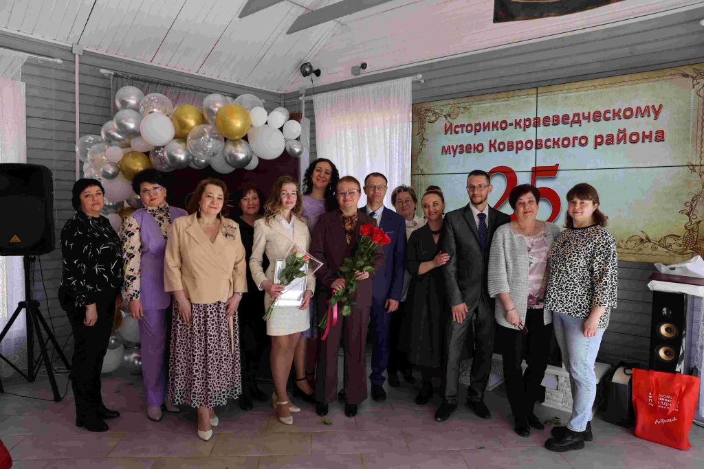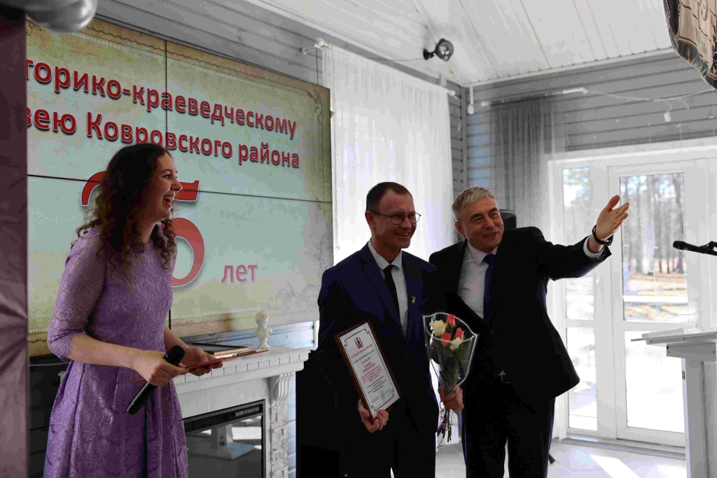 К собравшимся обратился первый вице-губернатор Д. Н. Лызлов. Он поздравил коллектив музея с юбилеем, высоко оценив его работу, отметив, что мало в каких районах области в последние годы открывалось так много новых музеев, как в Ковровском районе. Дмитрий Николаевич вручил Благодарность Губернатора Владимирской области Александра Авдеева директору музея Ковровского района Элле Фроловой "за успехи в профессиональной деятельности и добросовестную работу".