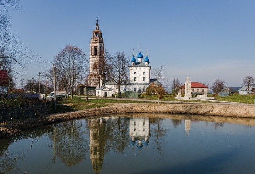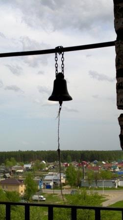 Далее маршрут был продолжен до горы Егорий, после чего все вернулись наверх к Покровскому храму. Здесь состоялось знакомство с историей села и храма Покрова Пресвятой Богородицы. У входа в храм участников программы встретил его настоятель отец Владислав, который благословил всем желающим подняться на колокольню. Впервые за многие десятилетия было совершено это восхождение. На верхней площадке колокольни в одном из «слухов» чудом сохранился небольшой колокол, и, конечно же, возникло непреодолимое желание в него позвонить, тем более, что продолжаются дни празднования светлой Пасхи. И вот над селом зазвучал малиновый звон «проснувшегося» колокола, наполняя сердца участников программы пасхальной радостью.