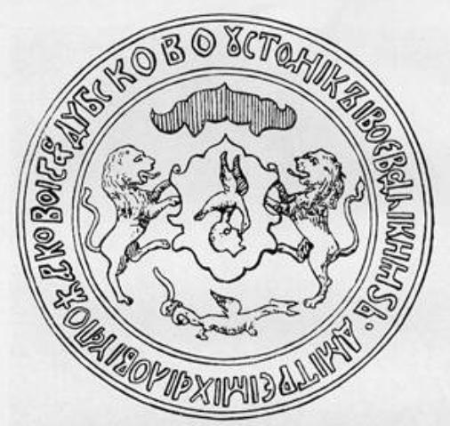 Однако сохранилось изображение герба самого знаменитого из Пожарских князя Дмитрия Михайловича Пожарского, которое относится к началу 1610-х годов. Этот герб был вырезан на личной печати воеводы и лидера Второго земского ополчения, которую он использовал при отправке официальных писем в качестве полководца и государственного деятеля. Именно такой печатью князь Д.М. Пожарский в 1612 году запечатал письмо императору «Священной Римской империи» Рудольфу II фон Габсбургу. На печати в щите представлен орел или коршун, клюющий мертвую голову. Щит держат два льва, геральдически верно изображенные, над щитом находится корона, а внизу печати извивается дракон. Вокруг изображения надпись: «Стольник и воевода князь Дмитрей