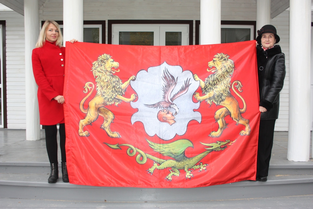 Атласный двухсторонний флаг с гербом князей Пожарских размером 2,2 х 1,5 метра был изготовлен в Москве в двух экземплярах. Один в недалеком будущем поднимется над крепостью в селе Павловское, а второй выполнен в качестве запасного. А пока флагшток под это знамя еще не готов (он появится у восточной стены крепости), туристы с удовольствием фотографируются на память с уникальным флагом, подобного которому больше нигде нет.