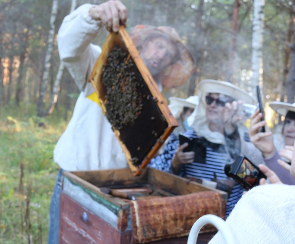 В туристской программе «Наши Мёдуши» особую роль сыграла экскурсия на настоящую лесную пасеку известного ковровского пчеловода Г.И. Гордеева. Геннадий Исаевич на примере своей пасеки показал гостям из Ярославской области, как в настоящее время в Ковровском районе возрождается бортевое лесное хозяйство. Пчеловод продемонстрировал работу пчёл в разных видах ульях, расположенных в лесном массиве у Бараново.