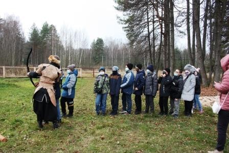 В экспозициях музея юные гости познакомились с историей павловской усадьбы и ее владельцев, а также получили возможность пофотографироваться в исторических костюмах с экспонатами музея. Так же ребята ознакомились со старинным усадебным парком и его ландшафтными экспозициями. Особое внимание в программе было уделено экспозиции в «Крепости-остроге князей Пожарских», где ребята подробнее познакомились с историей рода князей Пожарских, а так же с многочисленными образцами средневекового русского оружия и снаряжения, которое представлено в главной въездной башни крепости. Юные гости активно участвовали в мастер-классе по освоению техники средневекового боя и стрельбы из лука под руководством реконструкторов из «Стародубской заставы». Школьники ловко осваивали технику на практике в парных боях, а так же поочередно стреляя из лука.
