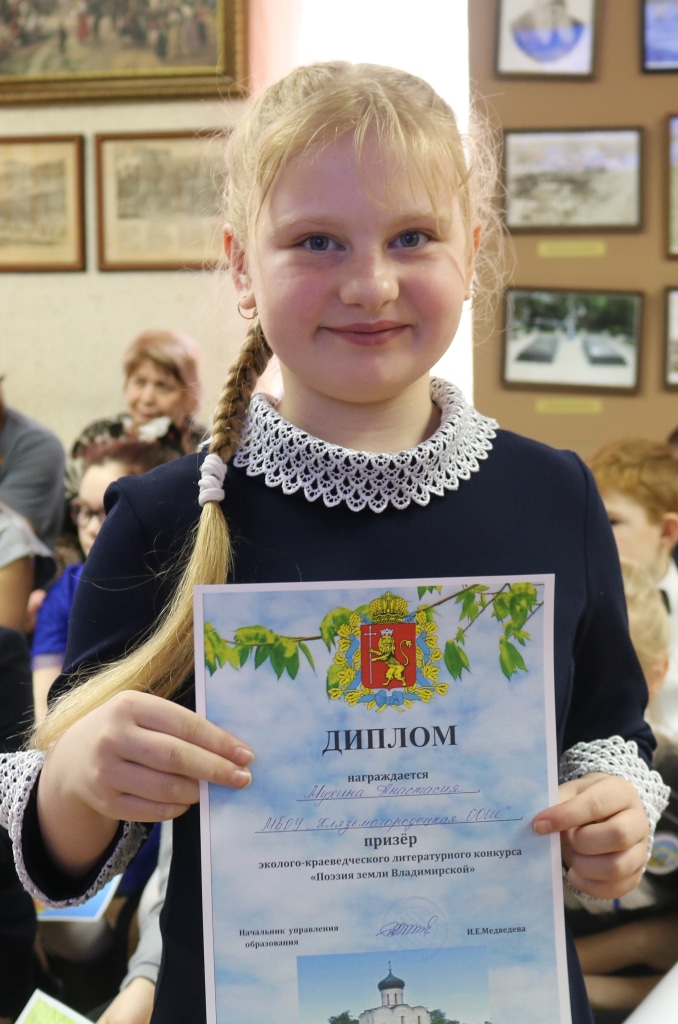 28 марта в Историко-краеведческом музее Ковровского района прошел традиционный эколого-краеведческий литературный конкурс «Поэзия земли Владимирской». Организатором конкурса стал Центр развития образования Ковровского района при участии районного музея. В литературном конкурсе приняло участие более 40 учащихся начальных классов всех школ Ковровского района. Многие из участников выбрали для чтения поучительные и веселые стихи Юрия Синицына. Ребята постарше читали стихотворения Алексея Фатьянова, прозу Владимира Солоухина и Сергея Голицына.