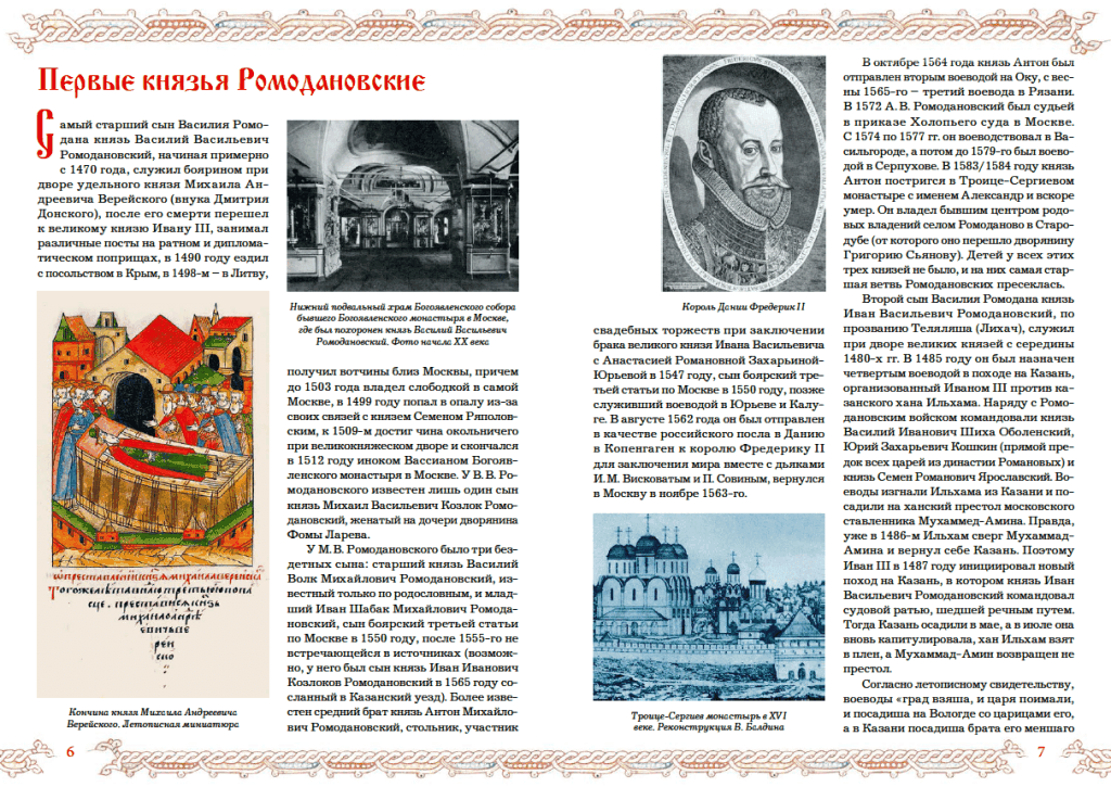 Что же касается отечественной истории, то в ней Ромодановские по праву занимают весьма заметное место. В царствование Петра Великого князь Федор Юрьевич Ромодановский занимал беспрецедентный в российской истории пост князя-кесаря — фактического руководителя страны и своего рода заместителя правящего государя, причем с царским титулом.
