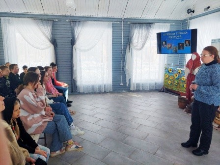 Знакомство ребят со временем Петра I началось с тематической экскурсии в музее и видео презентации «Птенцы гнезда Петрова» в павильоне усадебного парка. И экскурсия, и презентация носили краеведческую направленность. Школьники познакомились с биографиями тех государственных и военных деятелей петровского времени, которые были связаны с нашим краем и которые получили всероссийскую известность.
