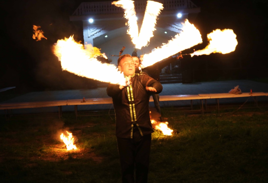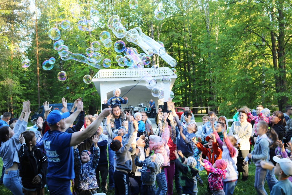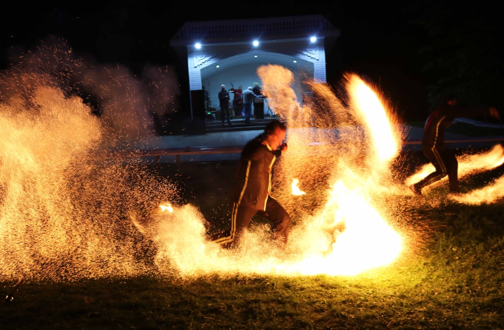 А с другой стороны — ретро-дискотека в стиле 80-х, танцы до упада посреди старинного парка, приводящий в восторг детвору парад гигантских мыльных пузырей и не оставившая никого равнодушным в прямом и переносном смысле зажигательная огненная феерия в сгущающихся сумерках