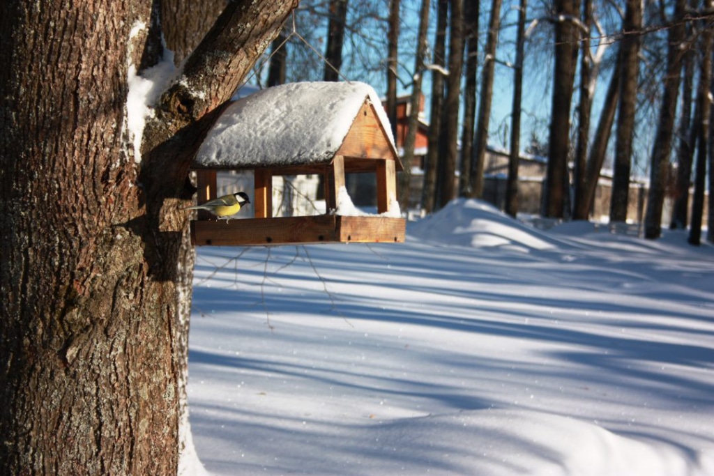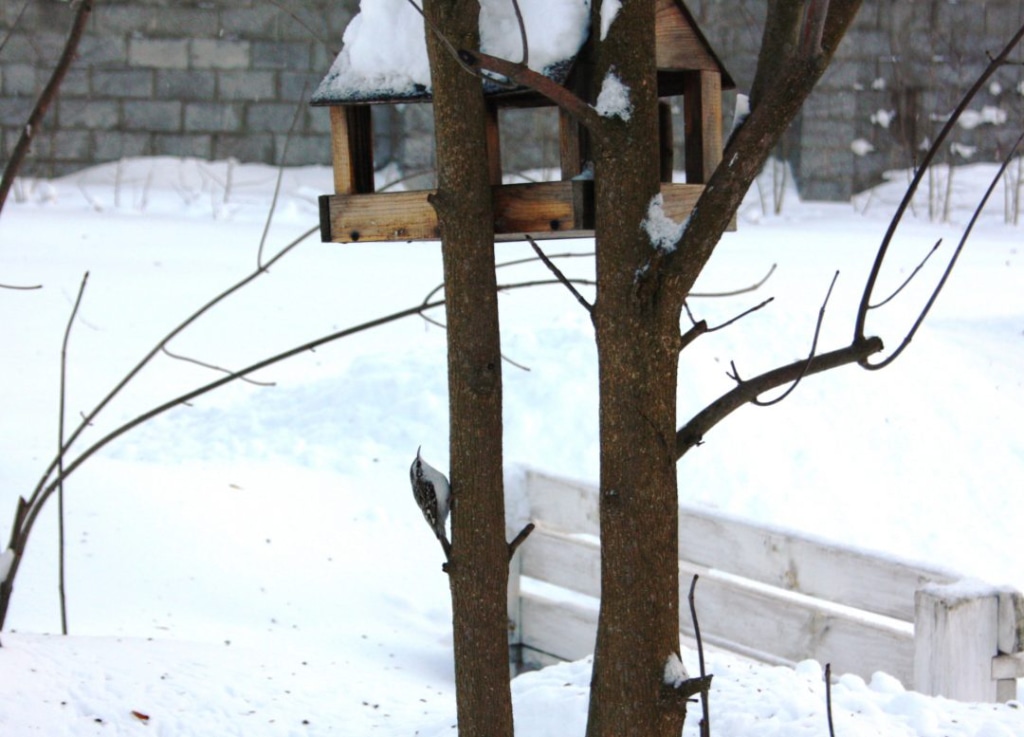 Из-за трудностей в поиске пропитания на кормушки стали прилетать птицы, которые до этого там не были замечены. Например, на одной из кормушек стала появляться пищуха. Пищуха – одна из самых маленьких птиц нашей области. Эти маленькие пташки частые гости парка в летний период (они мастерски маскируется под кору старинных лип), а вот зимой были замечены впервые.