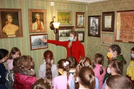 Сотрудники музея рассказали ребятам о жизни и подвигах знаменитого генералиссимуса, который участвовал в семи крупных войнах, выиграл 60 сражений и ни одного не проиграл. Юным посетителям музея показали уникальный экспонат – подлинный гравированный портрет А.В. Суворова 1799 года. Эта гравюра была выполнена венским гравером за несколько месяцев до кончины великого полководца.