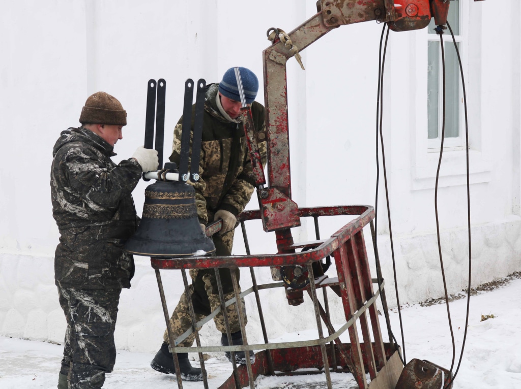 В тот же субботний день освященные колокола при помощи подъемного крана и работников «Муравии» уже заняли свое место на звоннице Воскресенского храма. Они впервые зазвонят в престольный праздник Святой Пасхи — в ночь с 27 на 28 апреля. Кстати, полный комплект колоколов для этой церкви состоит не из восьми, а из девяти колоколов. Девятый, самый большой колокол, уже заказан. Скорее всего, его изготовят и поднимут на звонницу еще до начала лета.