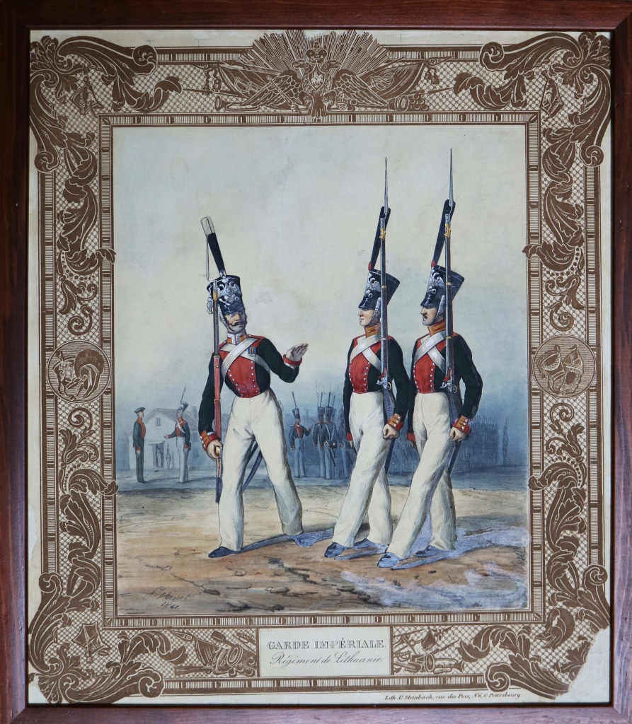 01. Литография У. Штейнбаха по рисунку П. М. Ж. Верне с изображением солдат лейб-гвардии Литовского полка, находящаяся в фондах Историко-краеведческого музея Ковровского района