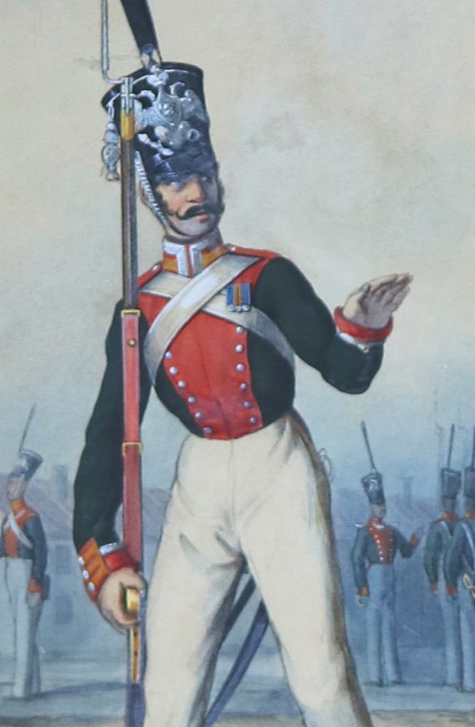 Сотрудники музея установили, что данное изображение 177-летней давности — раскрашенная акварелью литография из выпущенного в Петербурге мастером Ульрихом Штейнбахом альбома «Galerie Militaire, ou collection complete des uniformes de la garde imperiale russe» («Военная галерея, или полная коллекция униформ Российской Имперской Гвардии»). Уроженец города Мюльгаузена в Тюрингии У. Штейнбах, чистокровный немец, перебрался в Петербург в 1820 году в 23-летнем возрасте и жил там до кончины в 1865-м. По моде того времени подписи были выполнены на французском языке.