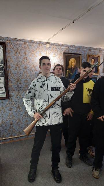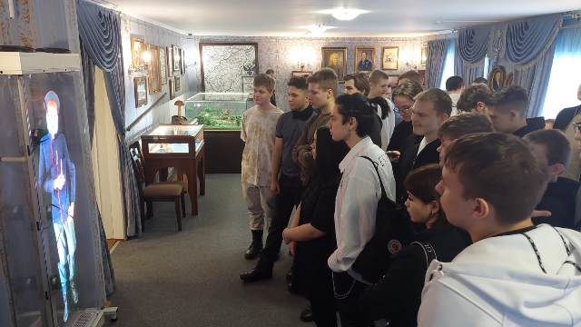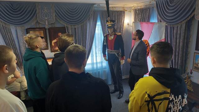 Ребята смогли не только увидеть воссозданный интерьер усадебного дома, но и реплики оружий прошлых столетий, макеты и диорамы известных сражений, реплики офицерских и солдатских наград, а также мундиры поручика лейб-гвардии Литовского полка времен Отечественной войны 1812 года и дворцового гренадера второй четверти XIX столетия.