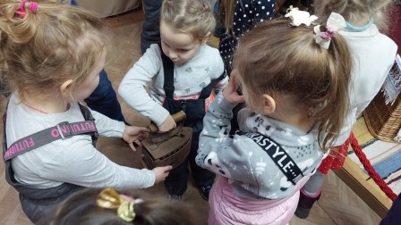 Особый интерес у маленьких гостей музея вызвала экспозиция «Офени – загадка ковровских коробейников», в которой представлен фрагмент русской крестьянской избы. Здесь находятся музейные экспонаты – старинные предметы крестьянского быта. С большим интересом малыши слушали рассказ экскурсовода о том, как раньше жили на Руси, как одевались, как готовили, с любопытством рассматривали предметы, которые уже в повседневной жизни давно не используются – угольные утюги, четверти, рубель, чугунки, крынки, коромысло. Ребята делились своими впечатлениями об увиденном, рассказывали наперебой о тех предметах, о которых они уже слышали и знали.