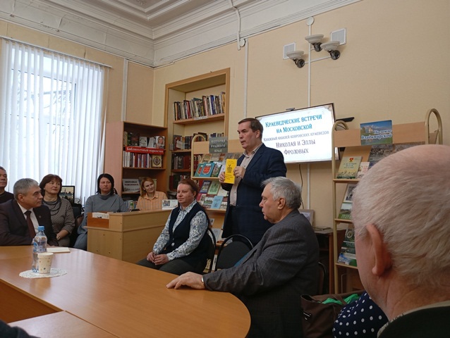Поводом для нынешней выставки стал необычный "книжный юбилей". В общей сложности Фроловы издали более 100 книг по историко-краеведческой тематике (если точно, то всего их вышло уже 105). На открытии книжной выставки ее участники встретились с авторами книг.