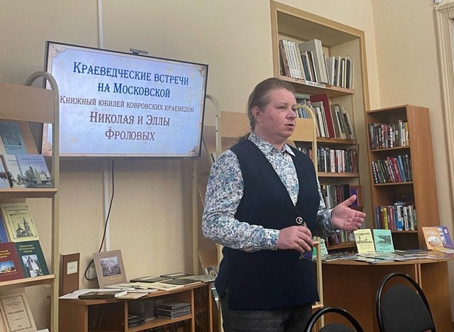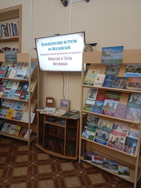 В Ковровской центральной районной библиотеке 7 декабря открылась подготовленная совместно с Историко-краеведческий музеем Ковровского района выставка книг краеведов Николая и Эллы Фроловых, едва ли не самых активных краеведов Владимирской области. Н. Фролов — журналист с более чем 30-летним опытом работы, Э. Фролова — кандидат исторических наук, она почти четверть века возглавляет районный музей, созданный с нуля при ее непосредственном участии.