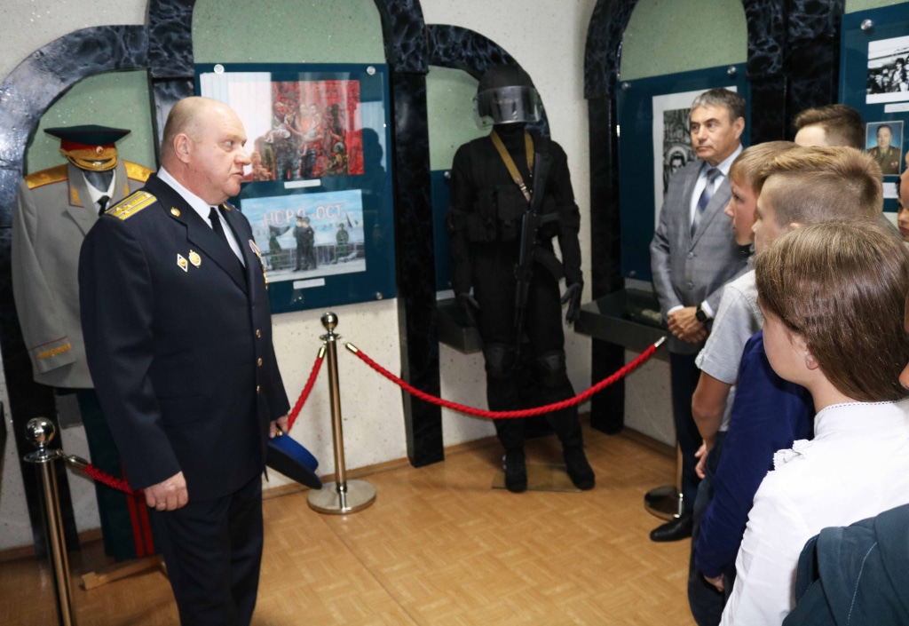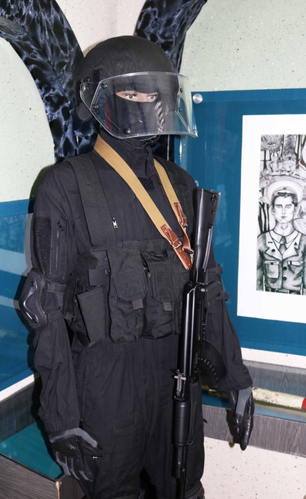 На выставке представлено штурмовое обмундирование бойца формирования специального назначения, а также «трофеи» сотрудников ФСБ, изъятые ими у террористов, в том числе, ручной противотанковый гранатомет (РПГ). Интерес представляет образец парализующего оружия сотрудников КГБ "Фиалка-М", выпущенного для борьбы с потенциальными террористами и экстремистами в канун Олимпиады 1980 года в Москве.