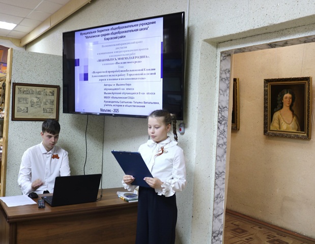 На научно-практической краеведческой конференции, которая прошла в музее Ковровского района, учащиеся защищали свои работы, выступая с презентациями. Жюри, в которое входили представители из Управления образования, директор и сотрудники музея оценивало выступающих и по итогам конференции определились следующие победителей: Фролова Екатерина и Шубин Дмитрий в номинации «Здесь Родины моей начало. Страницы истории» с работой «Судьба ученика нашей школы Евлампия Дунаева (1877-1919 гг.)» из МБОУ «Большевсегодическая ООШ», Борисов Александр в номинации «Мои земляки в судьбе малой Родины» с работой «Эхо славы великого князя Александра Невского в героических подвигах двух комбатов» из МБОУ «Мелеховская СОШ №1», Сосенкова Валерия в номинации «Наследие моего рода» с работой «Героические страницы семьи» из МБОУ «Клязьмогородецкая ООШ», Александрова Агата в номинации «Герои нашего времени» с работой «Лесин Александр – сын, брат, участник СВО» из МБОУ «Краснооктябрьская СОШ», Кожевникова Полина в номинации «Маленькие памятники большой войны» с работой «Дорога памяти. Великая Отечественная война в истории посёлка Мелехово» из МБОУ «Мелеховская СОШ №1» и Чураков Владимир в номинации «Памятники - хранилище памяти» с работой «Герои среди нас! Выпускники Малыгинской школы – герои и участники спецоперации» из МБОУ «Малыгинская СОШ».