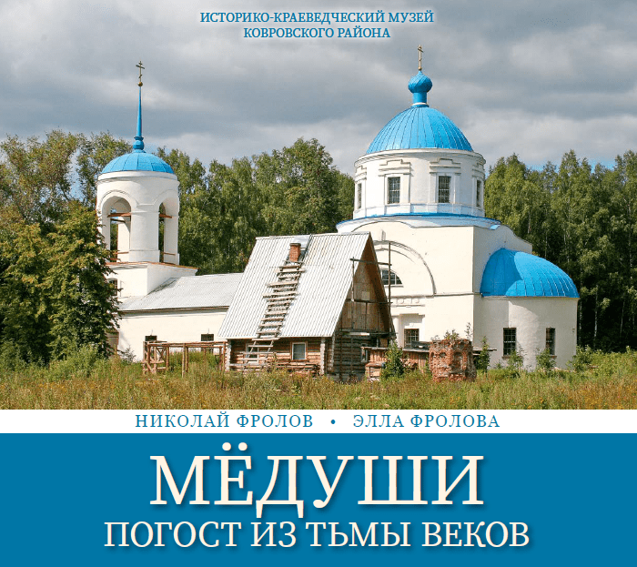 В субботу 25 мая в старинном Мёдушском погосте, расположенном на юго-западе Ковровского района недалеко от деревни Клюшниково, прошла презентация новой книги Николая и Эллы Фроловых "Мёдуши. Погост из тьмы веков", изданной в рамках проекта "Забытые уголки Владимирского края". Книга издана Историко-краеведческим музеем Ковровского района при поддержке администрации Ковровского района.