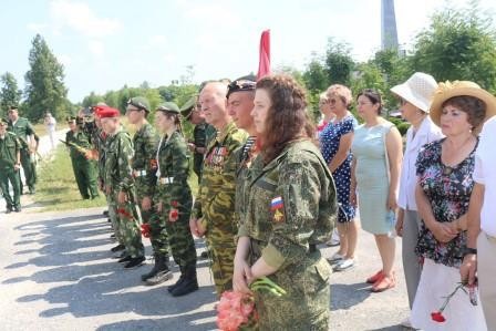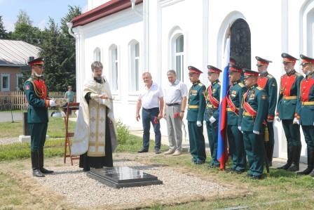 После выступлений участники мероприятия переместились к уже установленному у южной стены Воскресенской церкви кенотафу генерала Леванидова, у которого был выставлен почетный караул из воинов-гвардейцев в полной парадной форме. Честь открытия памятника была предоставлена В.В. Скороходову и В.А. Емелину. Иерей Симеон Кравченко совершил чин освящения памятника. Под звуки оружейного салюта и гимна России в исполнении военного духового оркестра присутствующие почтили память своего выдающегося земляка, а потом к памятнику генералу под исторический гимн России рубежа XVIII - XIX веков «Гром победы, раздавайся» и колокольный звон были возложены живые цветы.