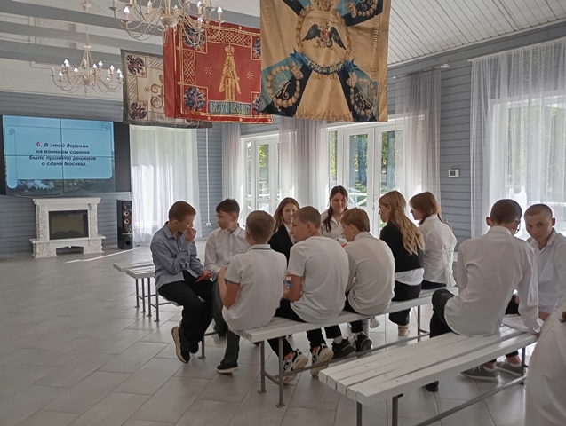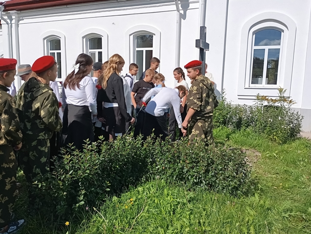 На могилу генерал-майора георгиевского кавалера Василия Семеновича Юкичева возложили венок и красные гвоздики.Затем дети и взрослые приняли участие в ещё одном очень важном и торжественном мероприятии, посвященном получению юными жителями Ковровского района самого главного документа - паспорта гражданина Российской Федерации. А в заключении дети приняли участие в увлекательной игре-квесте "Бородино".