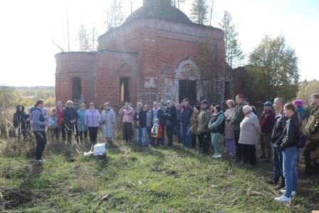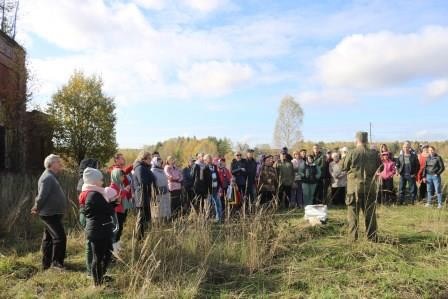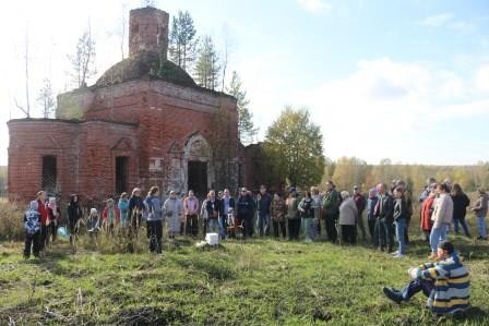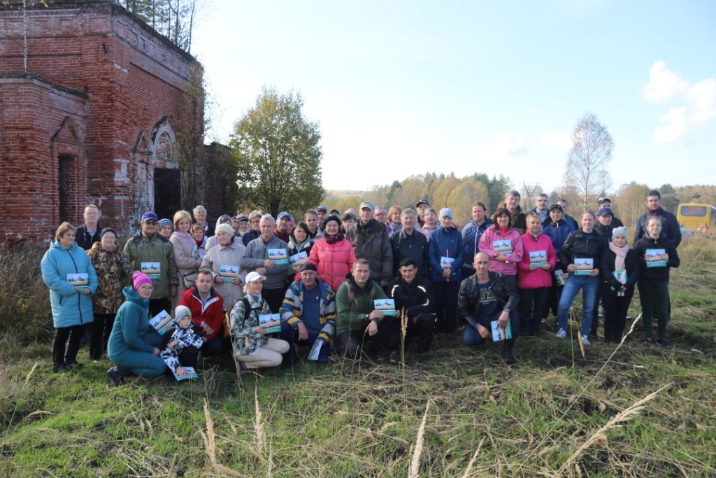 Для конца второй декады октября субботний день выдался на редкость погожим — теплым и солнечным. Участники презентации (а таковым мог стать каждый, кому не безразлична история нашего края) собирались сначала в селе Санниково, где заканчивалась нормальная асфальтированная дорога. Далее около 4 км требовалось преодолеть по разбитой дороге через лес. Когда-то эскаваторостроители положили там асфальт, но тридцать с лишним лет спустя на нем образовалось немало ям устрашающего вида. Тем не менее, более двух десятков машин доехали до самого Петровского. Впрочем, группа туристов приехали туда на велосипедах.