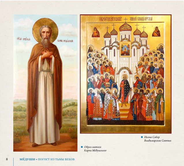 Погост Мёдуши – место старинное, с историей которого связана жизнь праведника Карпа Мёдушского, чье имя включено в Собор Владимирских святых. Книга «Мёдуши – погост из тьмы веков», которая находится уже в печати, предназначена для всех, кто интересуется прошлым своей малой Родины и Владимирской земли в целом.