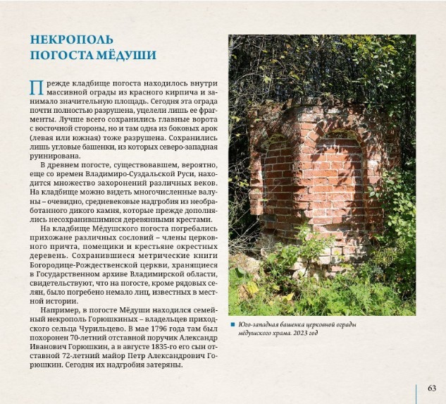 На этот раз книга посвящена истории старинного погоста Мёдуши, который находится в Ковровском районе, недалеко от деревни Клюшниково.