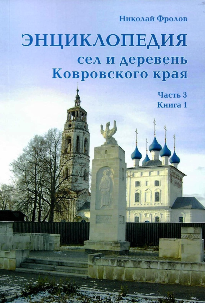 В Коврове издательство «Медиа-Пресс» выпустило новую книгу по истории и краеведению. Это первая книга 3-й части «Энциклопедии сел и деревень Ковровского края», автором которой является журналист и краевед Николай Фролов. Интересен, прежде всего, даже не сам по себе факт выпуска данной отдельной книги, а то, что она уже третья в серии, а с выпуском серийных изданий нередко возникают проблемы. Очень часто после первого или даже второго тома последующие в силу ряда обстоятельств больше не выходят. Однако указанная «Энциклопедия…» уже сейчас может быть отнесена к числу удачных и последовательно реализуемых проектов.