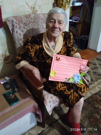 Об этом дне сотрудникам музея рассказала Валентина Николаевна Калинина, которая живет в селе Маринино и которая в этом году отметила 85-летие. Валентина Николаевна имеет знак «Ветеран труда», относится к категории «Дети войны», в военные годы работала и в колхозе, и на стеклозаводе в поселке Красный Октябрь. Участниками Великой Отечественной войны были ее отец и брат, которым посчастливилось вернуться домой.