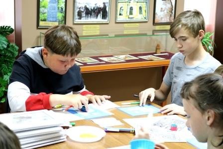 В начале программы ребята познакомились с экспозицией, посвященной офеням, где для них была проведена тематическая экскурсия. Они узнали о том, что в XVII – XIX века ковровский край был центром развития офенского промысла. Исторической родиной офеней считался Ковровский уезд, так называемый «Алексинский угол» – села Алексино, Лучкино и Шапкино с окружающими деревнями, а также села и деревни на границе Ковровского и Вязниковского уездов.