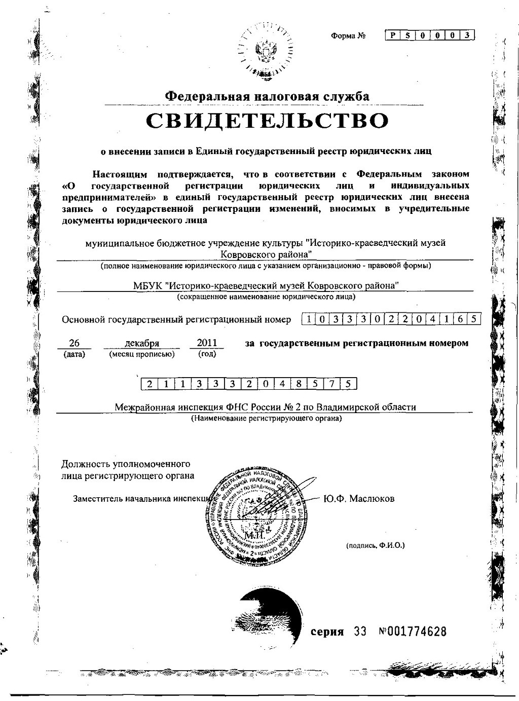Свидетельство о внесении записи в Единый государственный реестр юридических лиц