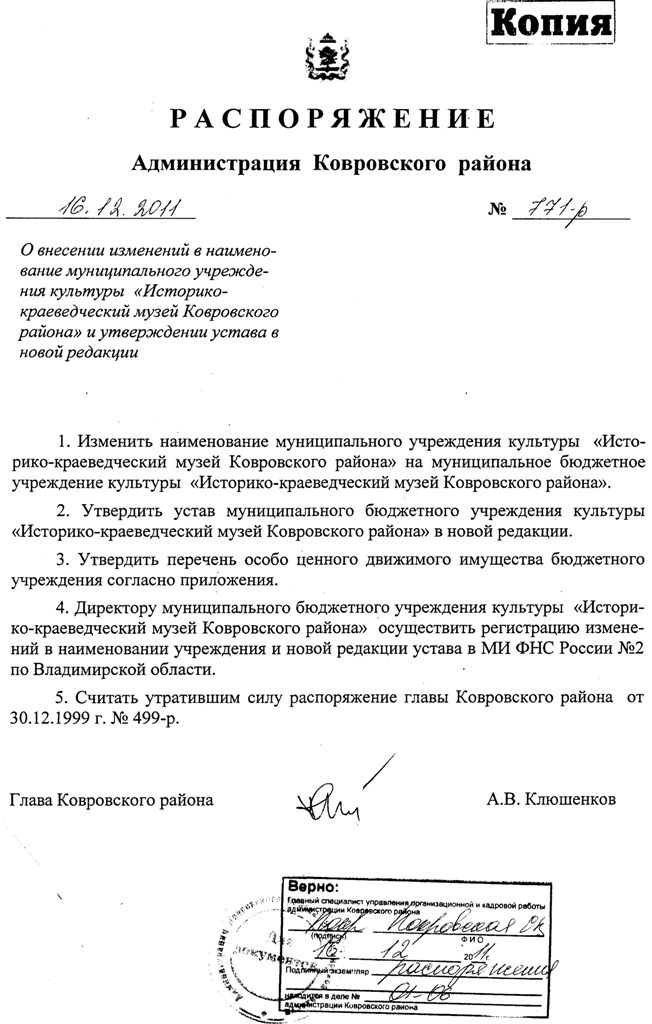 Директор Историко-краеведческого музея Ковровского района Элла Владимировна Фролова награждена Почетной грамотой Министерства культуры РФ