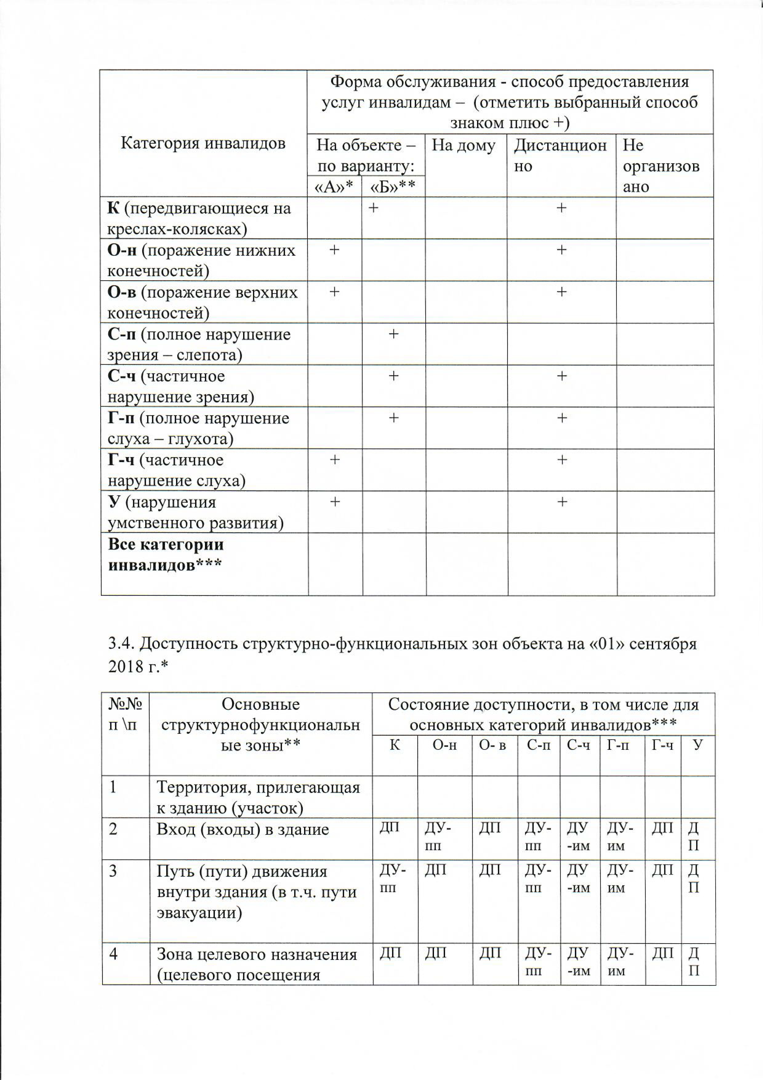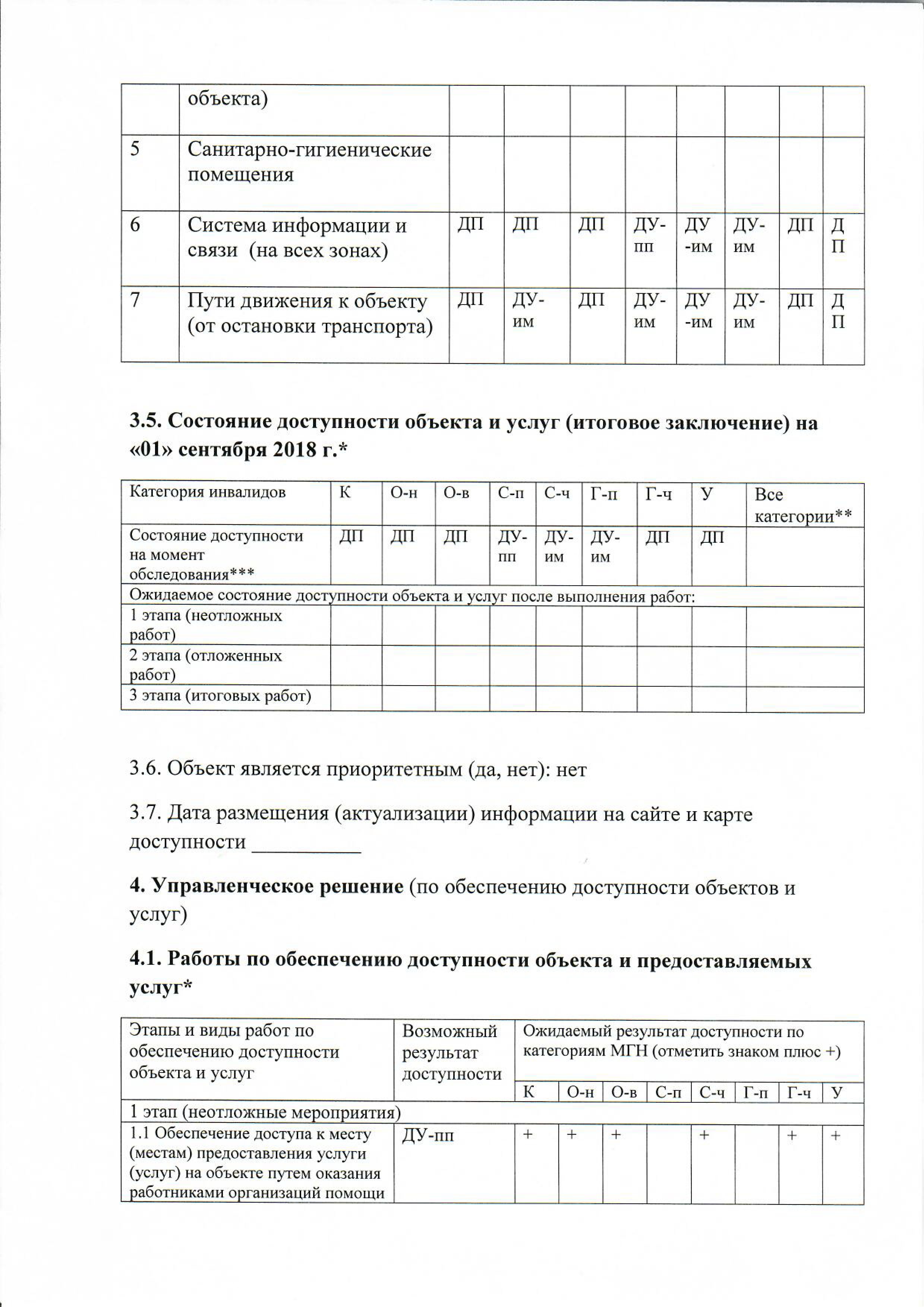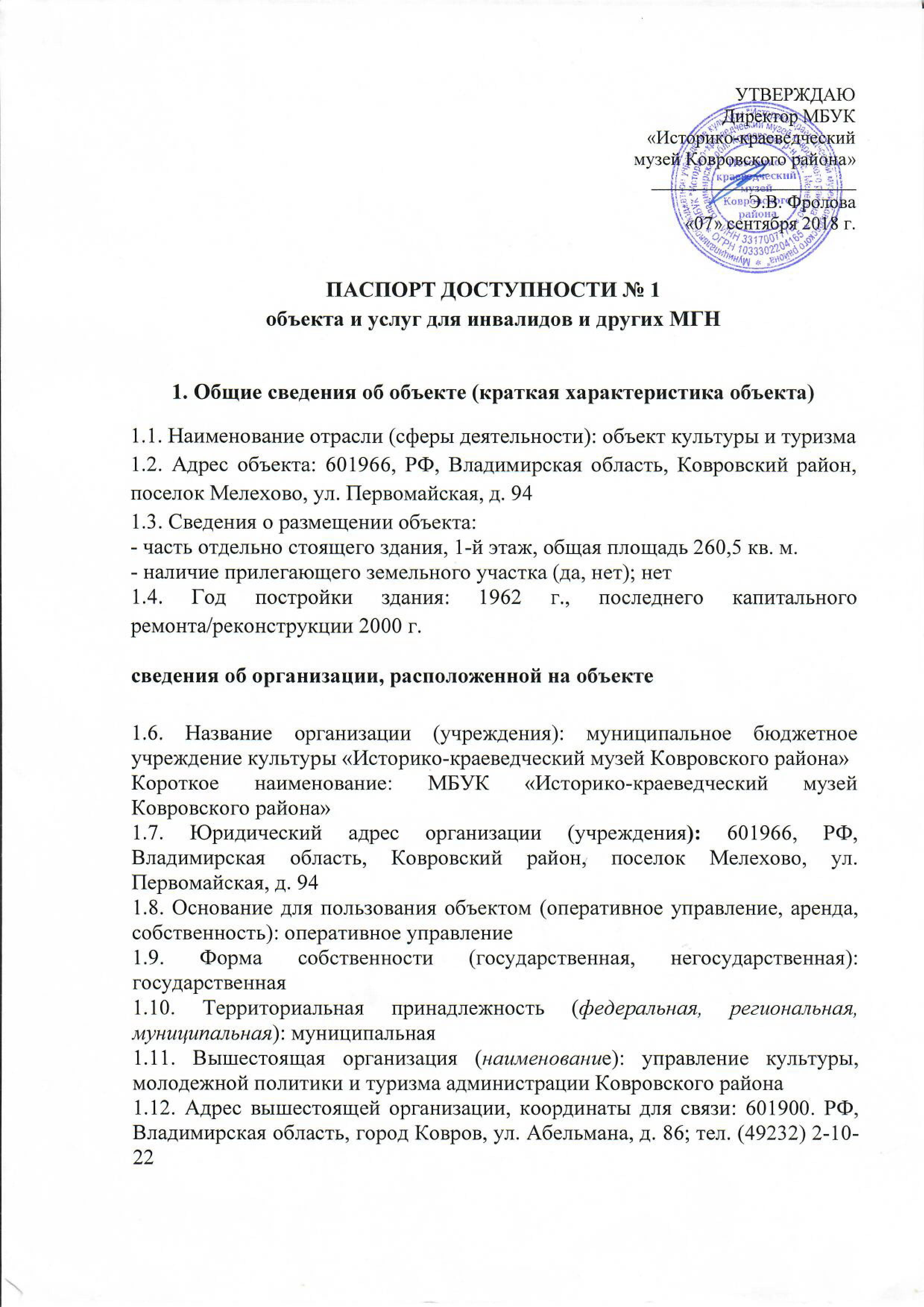 Паспорт доступности № 1 объекта и услуг для инвалидов и других МГН