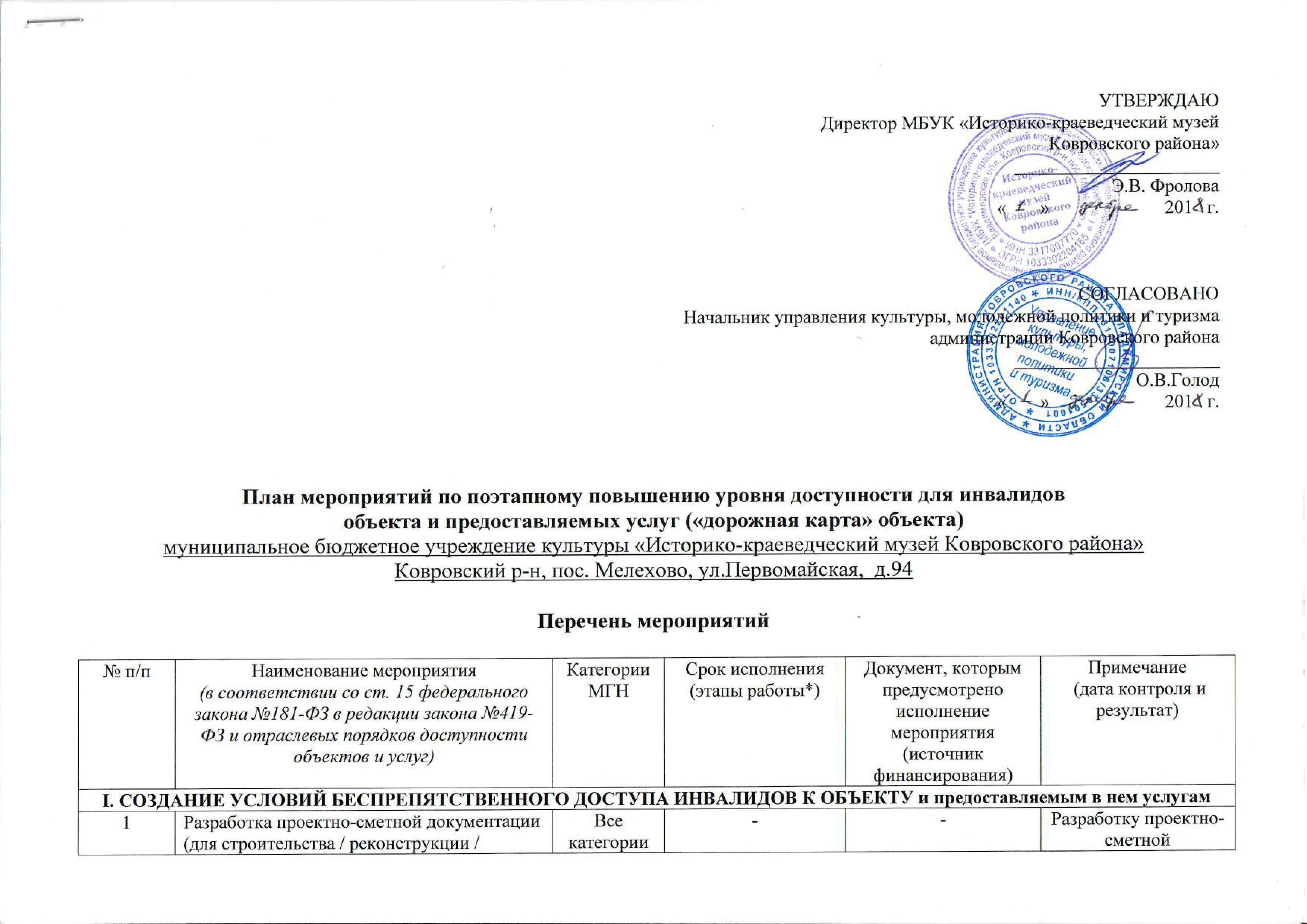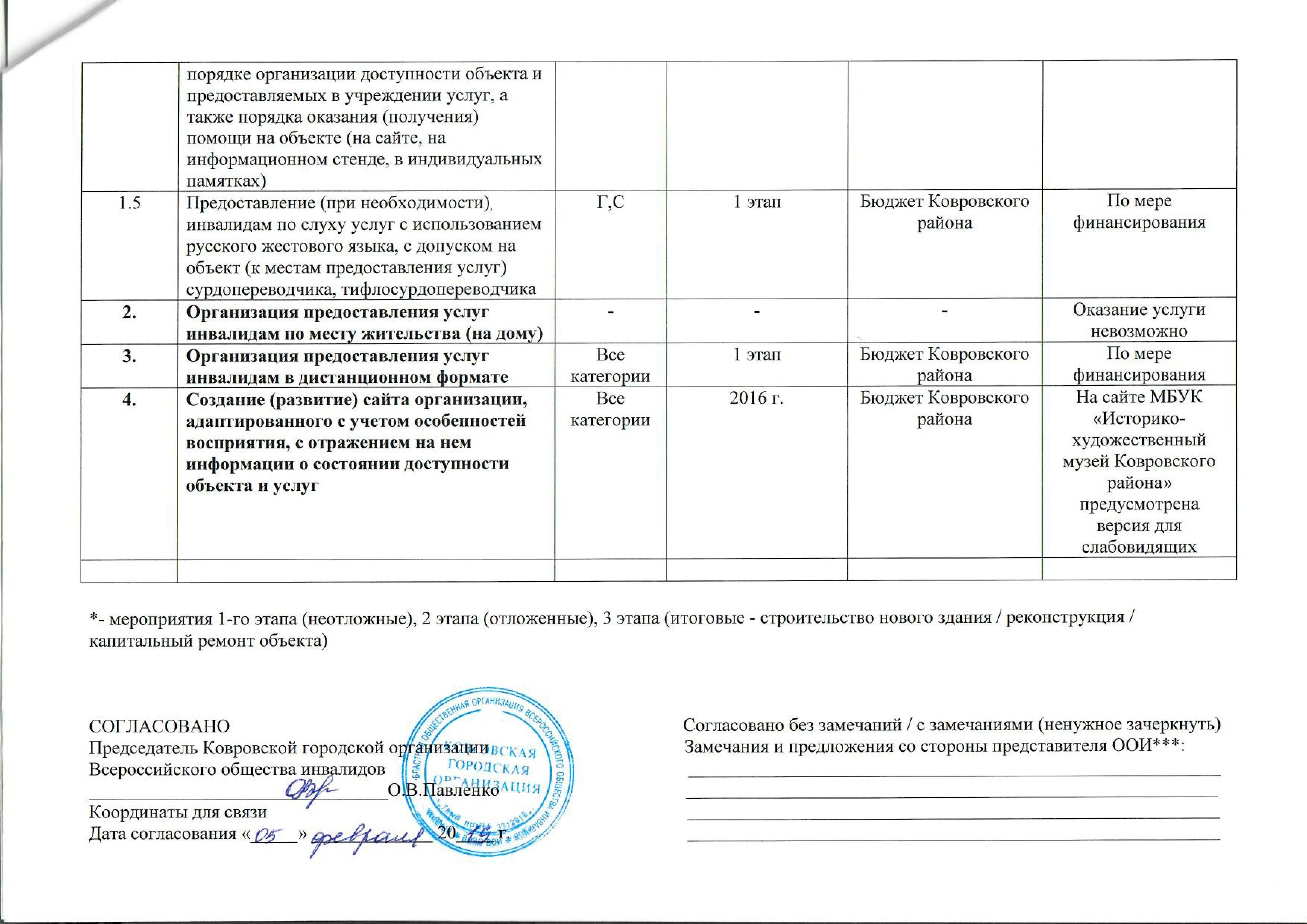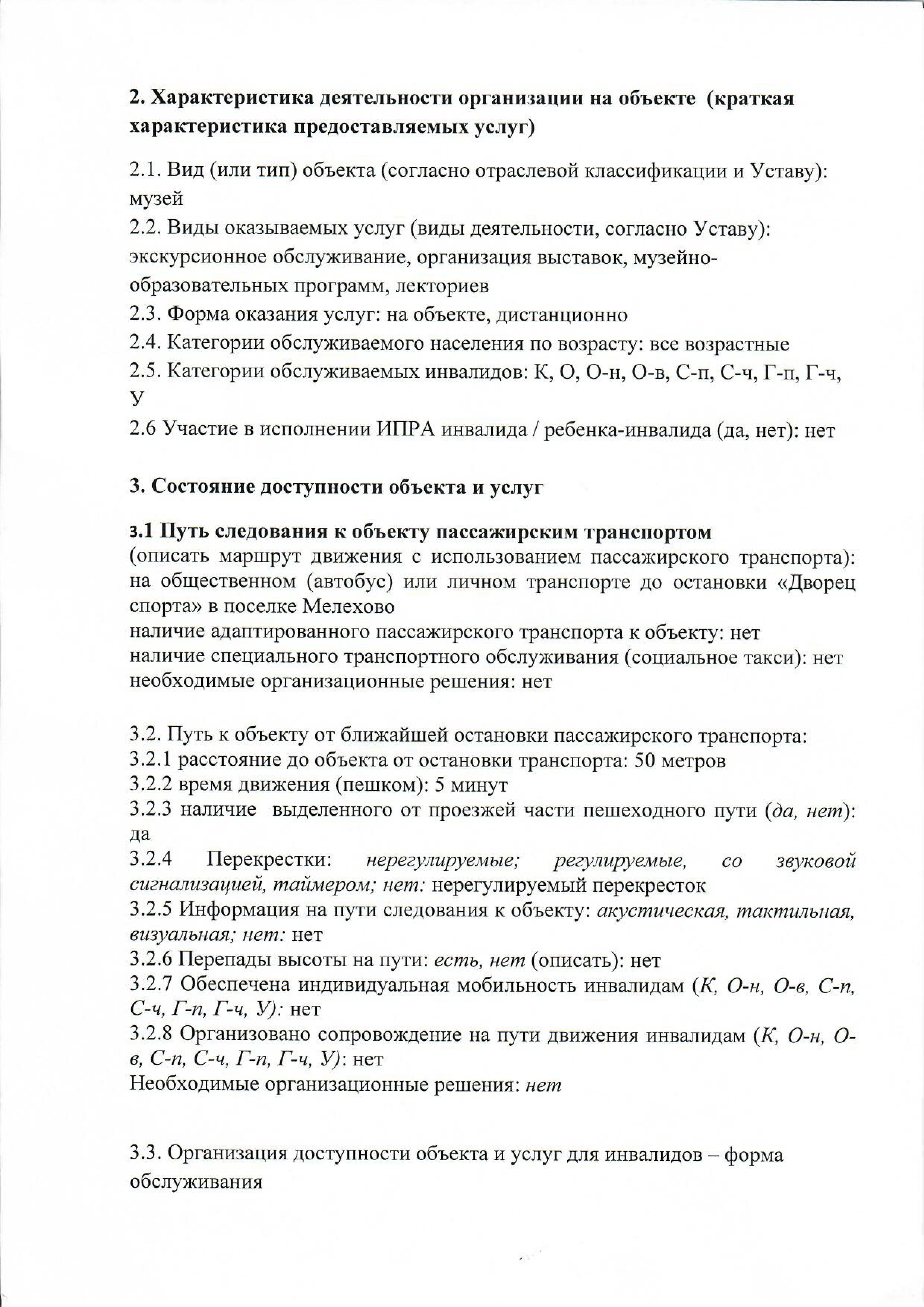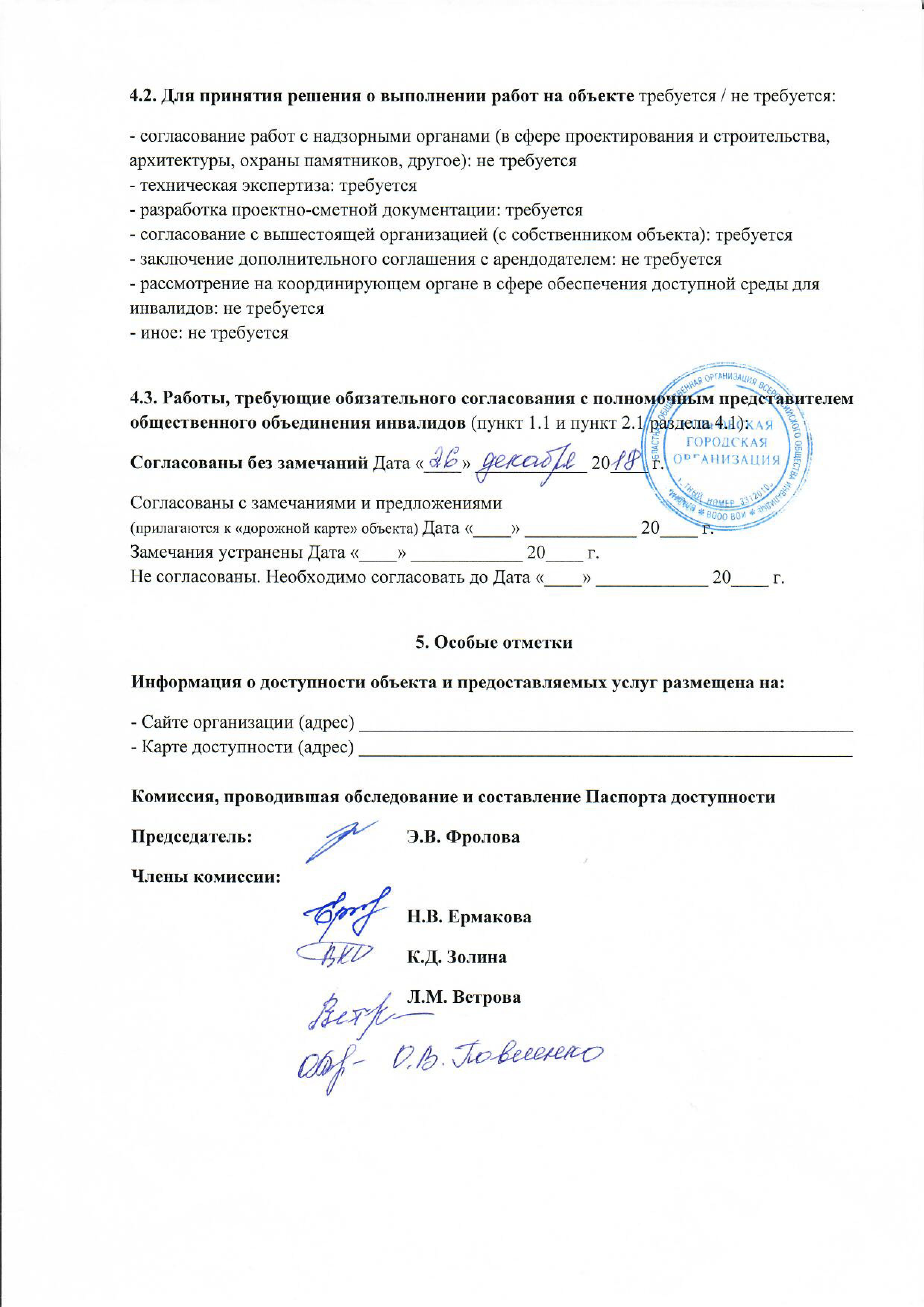 Паспорт доступности № 1 объекта и услуг для инвалидов и других МГН